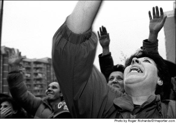 Sarajevans react as a bus with newly-released Bosnian prisoners-of-war goes past, in Sarajevo, Bosnia-Herzegovina, January 1996. THE NATO AIR STRIKES Excerpt From: Sarajevo survivor testimonies from OPSADA (The Siege) by FAMA International |