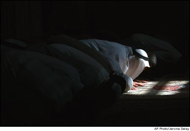 Iraqi men pray during the traditional Friday prayer service at the Abu-Hanifa mosque in Baghdad Friday Oct. 11 2002. many Iraqis said they would be ready to defend their country in the event of a U.S. led attack. |