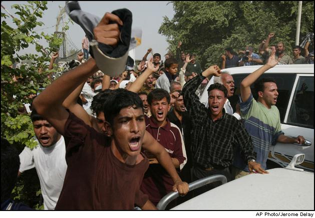 Iraqis storm the Abu Ghureib jail 35 kms northwest of Baghdad following the announcement by Saddam Hussein that most prisoners were going to be freed. Tens of thousands of Prisoners were greeted by their relatives and friends upon their release throughout Iraq. Only death row inmates were not released. |