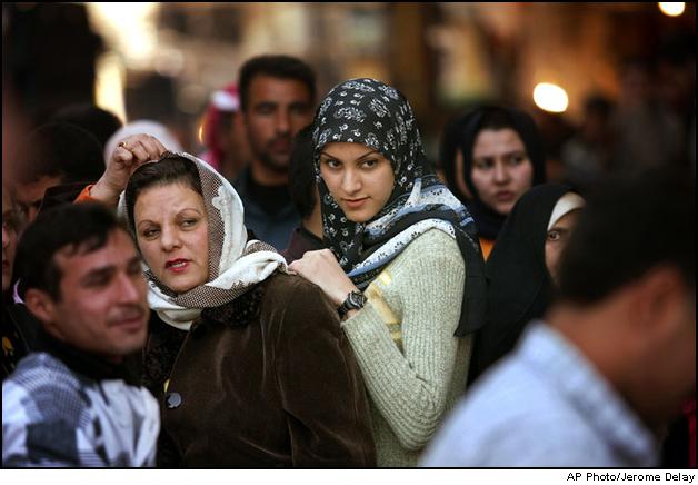 Iraqi women walk through the Khadmiya market on the northern edge of Bahgad, Iraq, Wednesday Jan. 29 2003. U.S. President George Bush during his State of the Union address in Washington, said that Iraqi President Saddam Hussein has shown "utter contempt' for the world community and must be held accountable. |