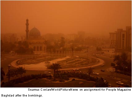 around me Baghdad burns. It looks like Saddam has lit the oil refineries