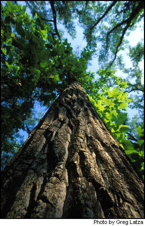 Cottonwood groves tower high above the sandy shoreline south of Vermillion. The cottonwood has a firm place in Missouri River history, having provided such necessities as shelter for frontier settlers and fuel for the 19th century steamboat industry, along with fulfilling a multitude of uses for Indian tribes. |