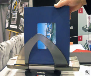 Anyone who doesn't want to be bothered with sending their images out to be made into an album should check out Unibind's do-it-yourself album kits. The company, which also does the back end for Apple's iPhoto books, was showing off their Professional Series XU138 Book Creator at PhotoPlus. In contrast to its $99 basic PhotoBook Creator kit which was released earlier this year, the Professional Series model, as its name suggests, is aimed at wedding photographers and other pros who want to make professional-looking hardcover albums themselves. Like the consumer version, the Professional Series model is a binding machine that heats up the spine of the album to glue the pages in. Albums, which are supplied by Unibind, now come in nine colors for the professional model and are available with or without a window, to view the photo underneath. They can also be customized with foil stamping. Along with having an attached cooling rack, the biggest upgrade on the pro machine is that is able to create PhotoBook albums with up to 650 pages. (The consumer version could fit up to 220 pages.) The Professional Series XU138 Book Creator sells for $455. www.unibind.com