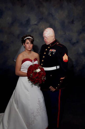 Wounded Marine Returns Home to Wed Wounded Marine Sgt. Ty Ziegel and Renee Kline have their portrait taken before their wedding.