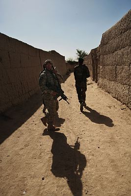 During "Operation Medusa," American and Afghan soldiers fear an ambush while patrolling in Pashmolu near Panjwai, 15 miles west of Kandahar, Afghanistan, on Sept. 21, 2006.