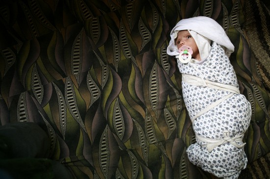 Afghanistan – Qamar's son, and the only hope in the family, lies on a mattress in the house after his mother died in the hospital, Badakshan province, Afghanistan, May 21, 2007. Qamar was a 26-year-old tuberculosis patient who died of postpartum complications two weeks after the delivery.