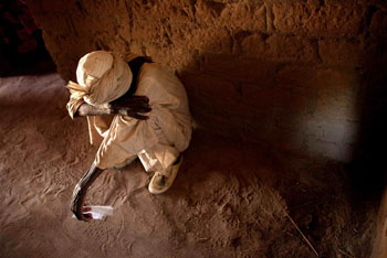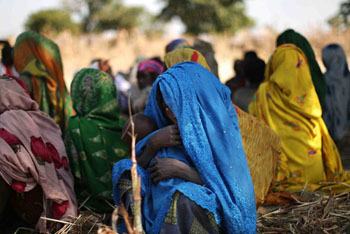 A woman sits with her child in the town of Massabiou, in the Central African Republic, Dec. 10, 2007. Massabiou, a village close to the Chadian border, was attacked by Junjaweed from Sudan in April, resulting in the killing of 36 residents and thousands fleeing. The residents that have returned to the village are now destitute with little food or shelter.